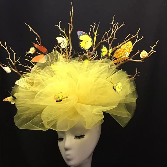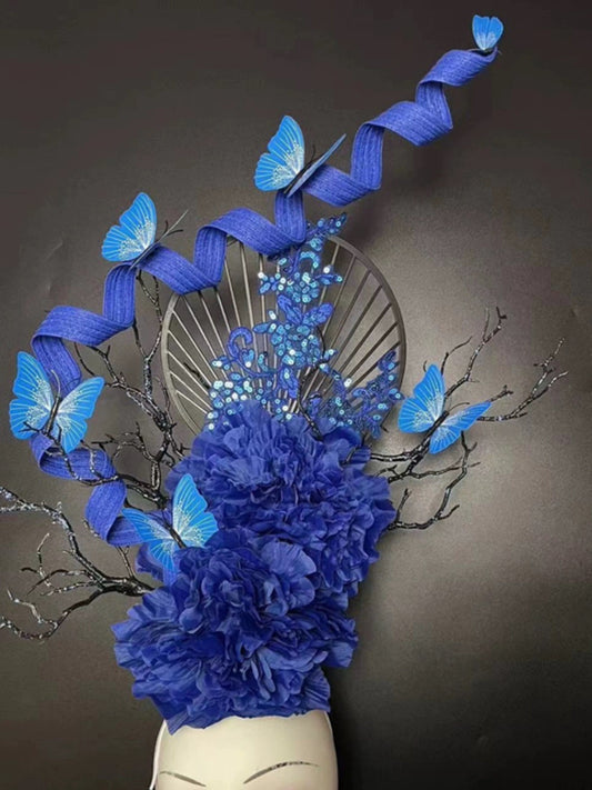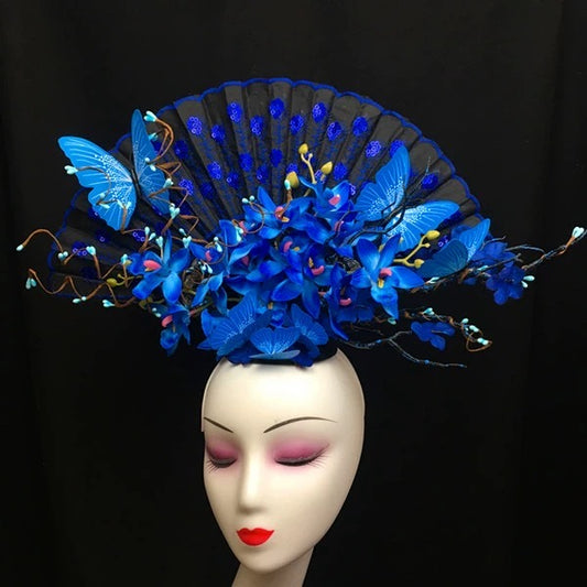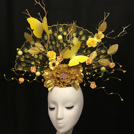 Extravagant Colorful Feather and Flower Headpiece with Butterfly Accents for Special Occasions