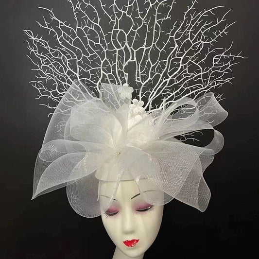 Crimson Elegance: A Floral and Fan-Themed Headpiece